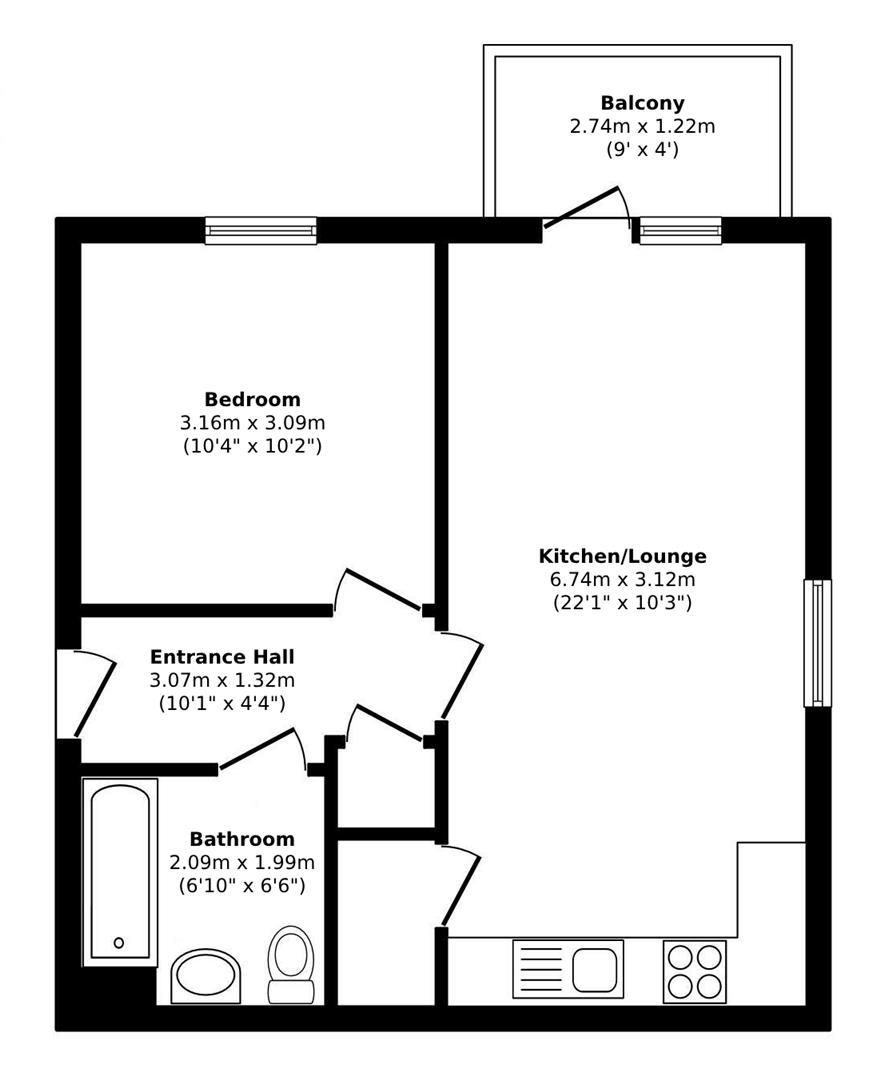 This flat boasts a well-equipped kitchen and a private balcony, ideal for enjoying your morning coffee or unwinding after a long day. With 463 sq ft of living space and floor-to-ceiling windows, this property offers a comfortable and inviting atmosphere.