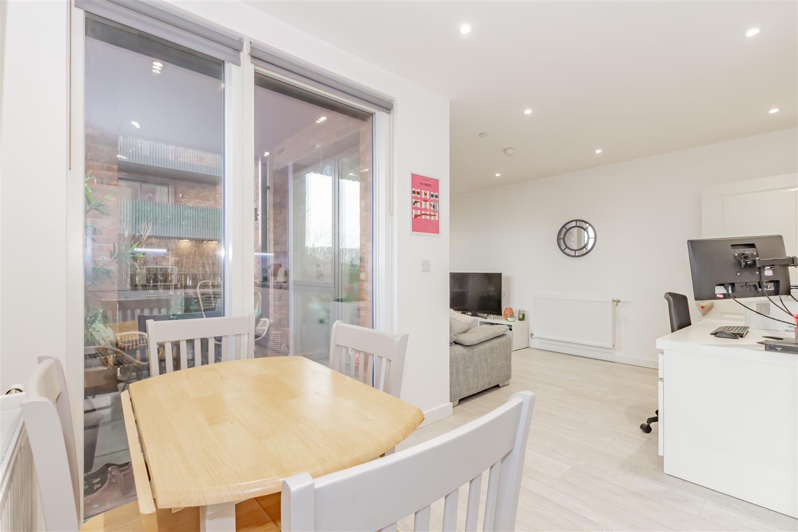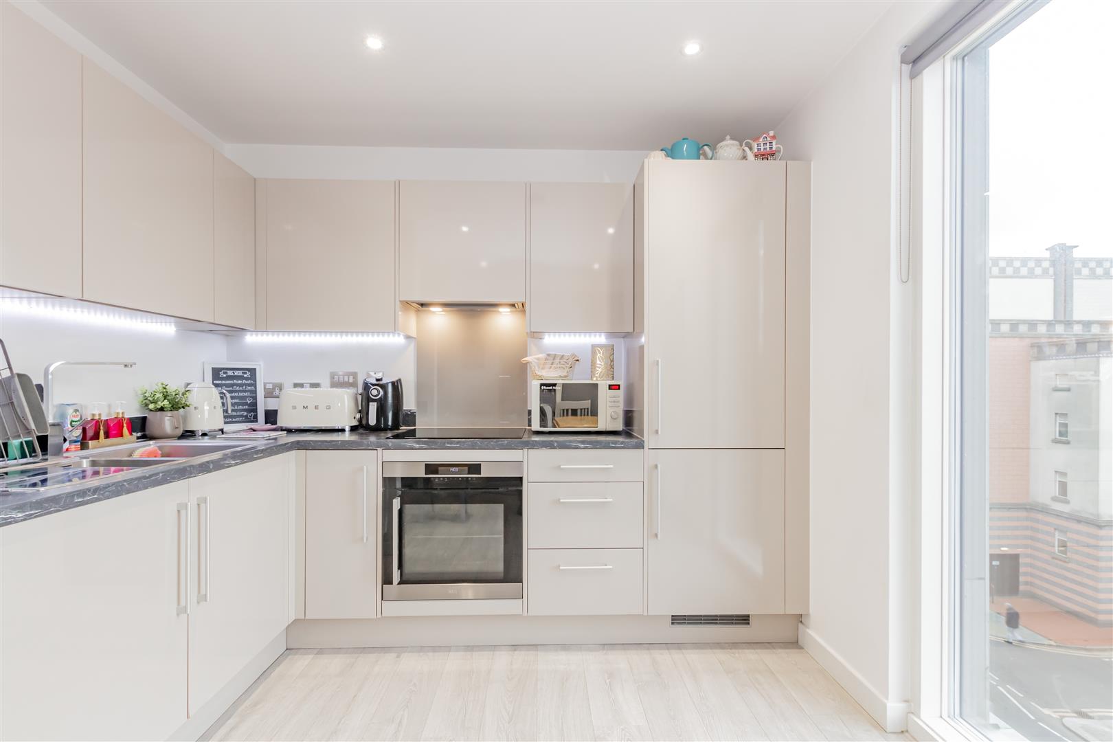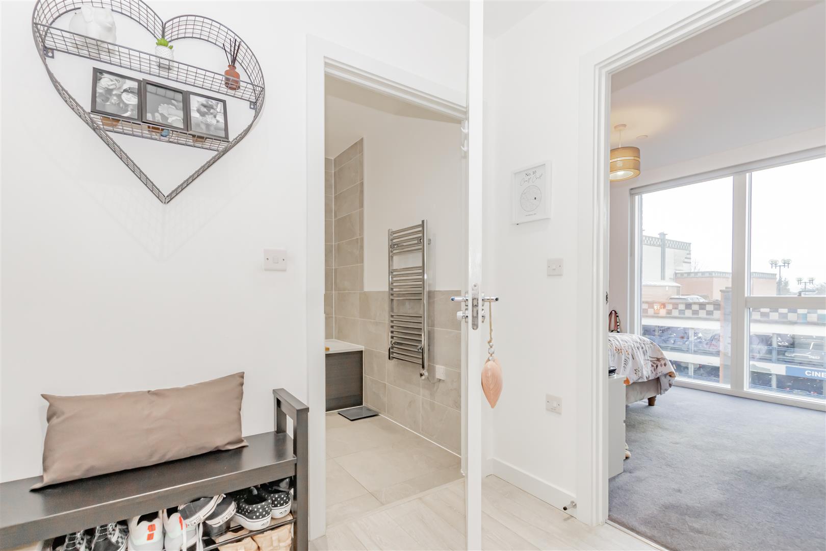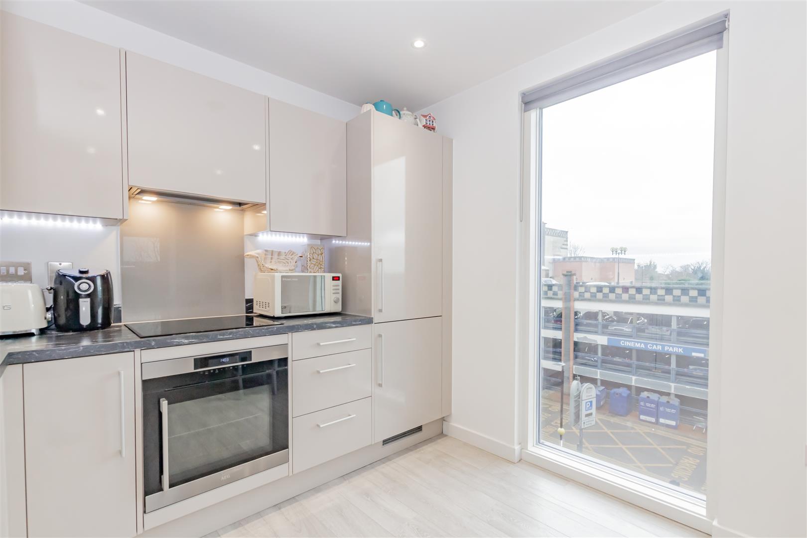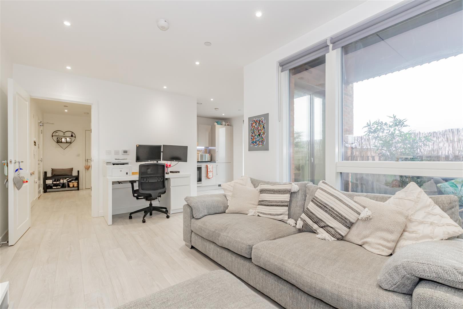 In a sought-after location in Bexleyheath and a mere stroll from the bustling Broadway shopping centre, this second-floor flat is a must-see for both first-time buyers and savvy investors. Upon entering, you encounter an inviting entrance hall featuring two expansive storage cupboards, one of which cleverly doubles as a utility cupboard. The lounge and modern kitchen boast double-glazed, floor-to-ceiling windows that flood the space with an abundance of natural light, creating an inviting atmosphere. The current owner, who efficiently works from home, has ample space for a desk. Step outside onto the private balcony adjoining the living area for a breath of fresh air. The bedroom is generously illuminated and includes built-in wardrobes, complemented by a contemporary bathroom.