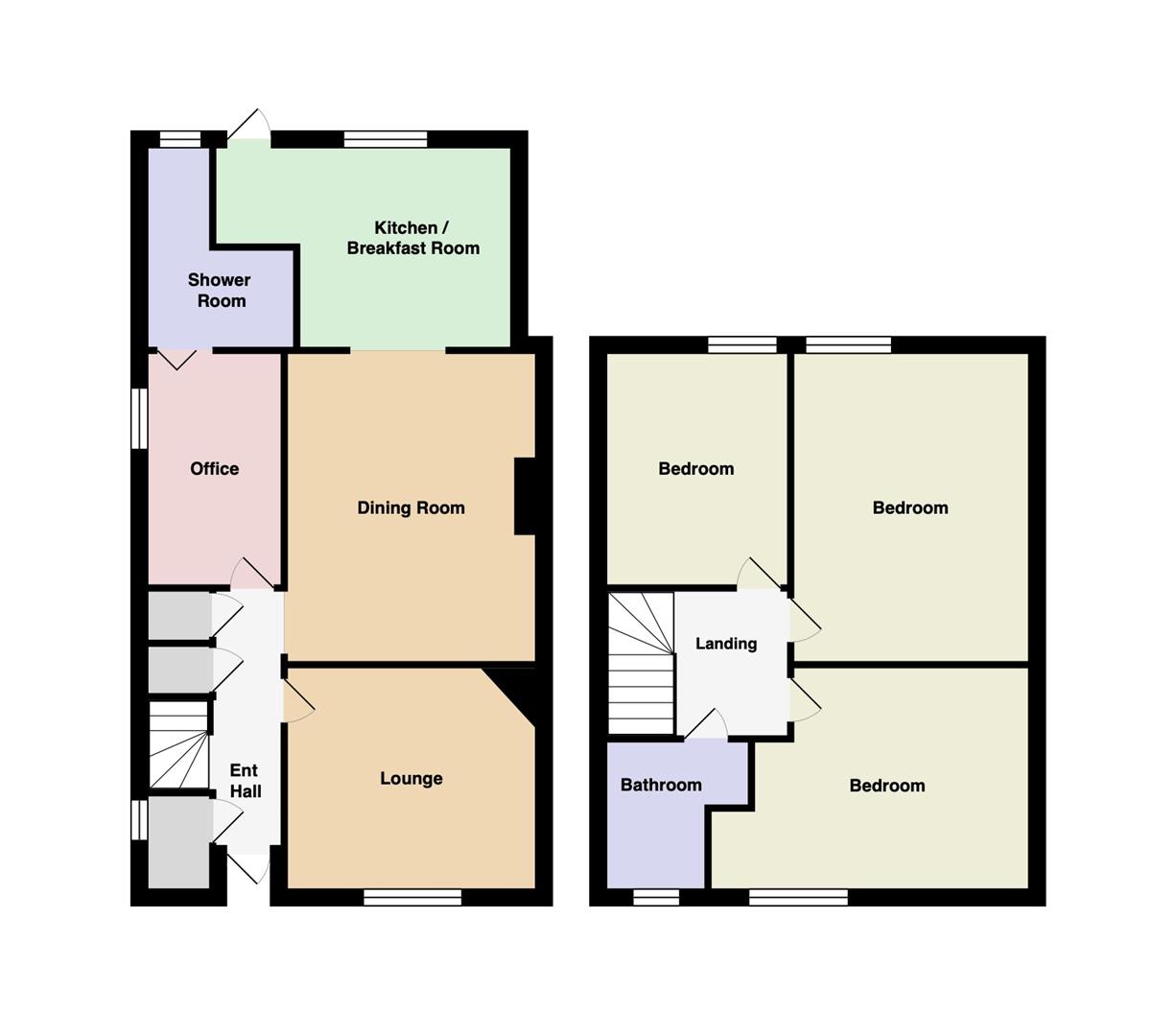 This charming family home is an excellent choice for first-time buyers and families looking for a spacious dwelling. With a generous 87 sq. m. (936.46 sq. ft.) of interior space, there's ample room for all your needs. The rear single-storey extension not only enhances the living space but also has the added convenience of a downstairs shower room and an office. The modern kitchen features a breakfast bar and is perfect for entertaining guests. Upstairs, you'll find three bedrooms and a well-appointed family bathroom.