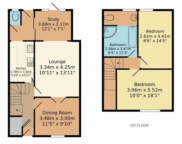 Downstairs, you’ll find a cosy living room, a separate dining room for meals or gatherings, and a bright study that’s great for working or relaxing. The kitchen is modern and easy to use, and there’s also a convenient toilet on the ground floor.
