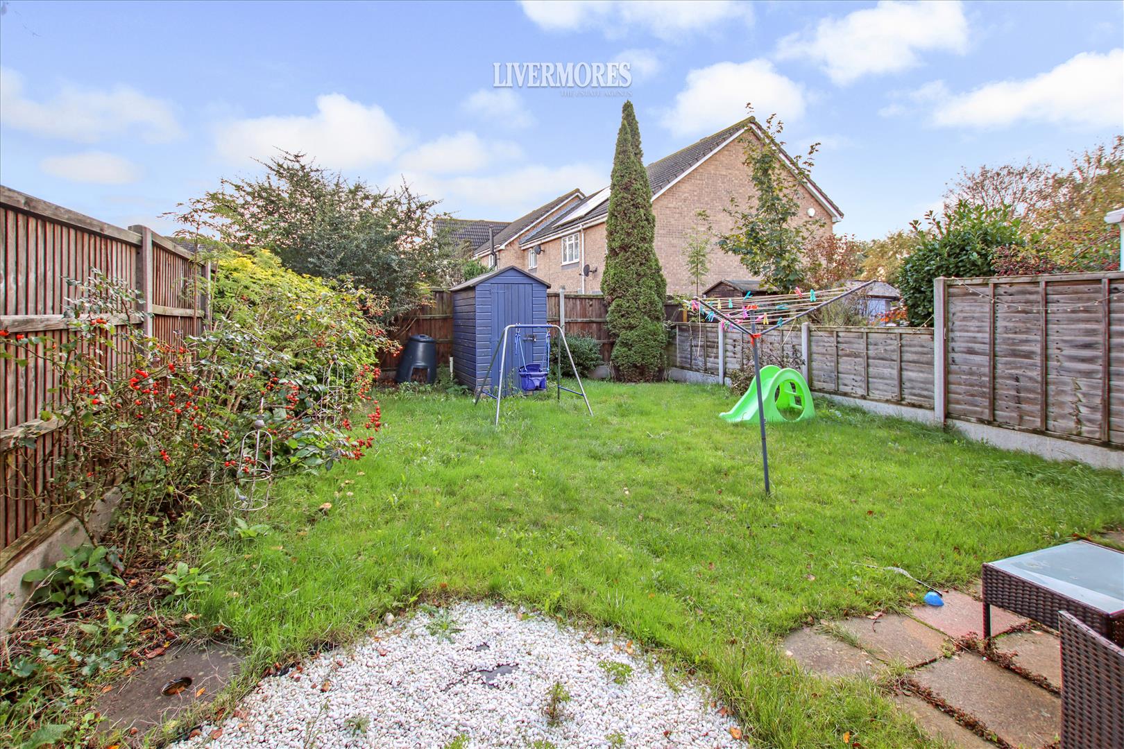 Lawned, patio, Good size.