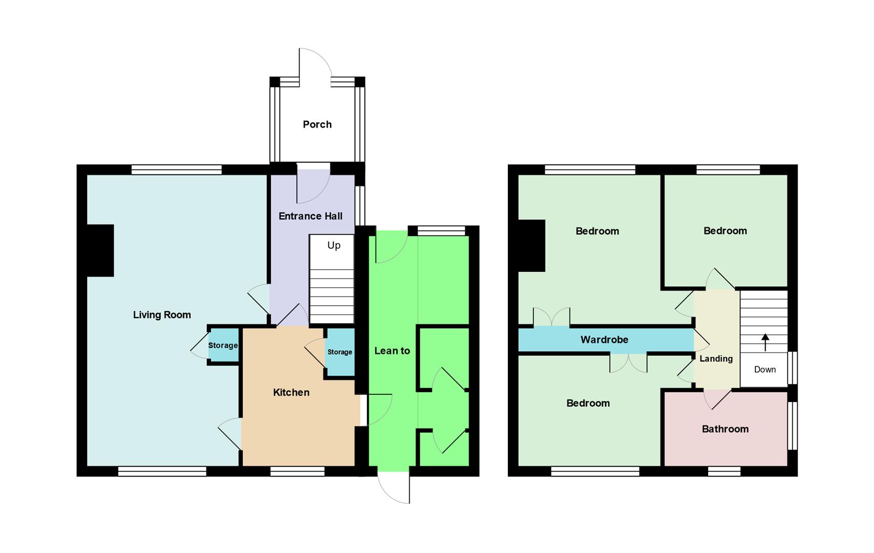 As you step inside, you're welcomed by a porch, creating an ideal transition from the outdoors to the entrance hall. To the right, the spacious open-plan lounge/diner is perfect for gatherings with friends and family. The large windows flood the area with natural light, creating a vibrant atmosphere. The separate kitchen provides ample space for all culinary needs, and the adjacent lean-to serves as a versatile storage and multi-use space, complete with a convenient toilet. Upstairs, each bedroom is well-proportioned, with bedrooms one and two benefiting from built-in wardrobes.