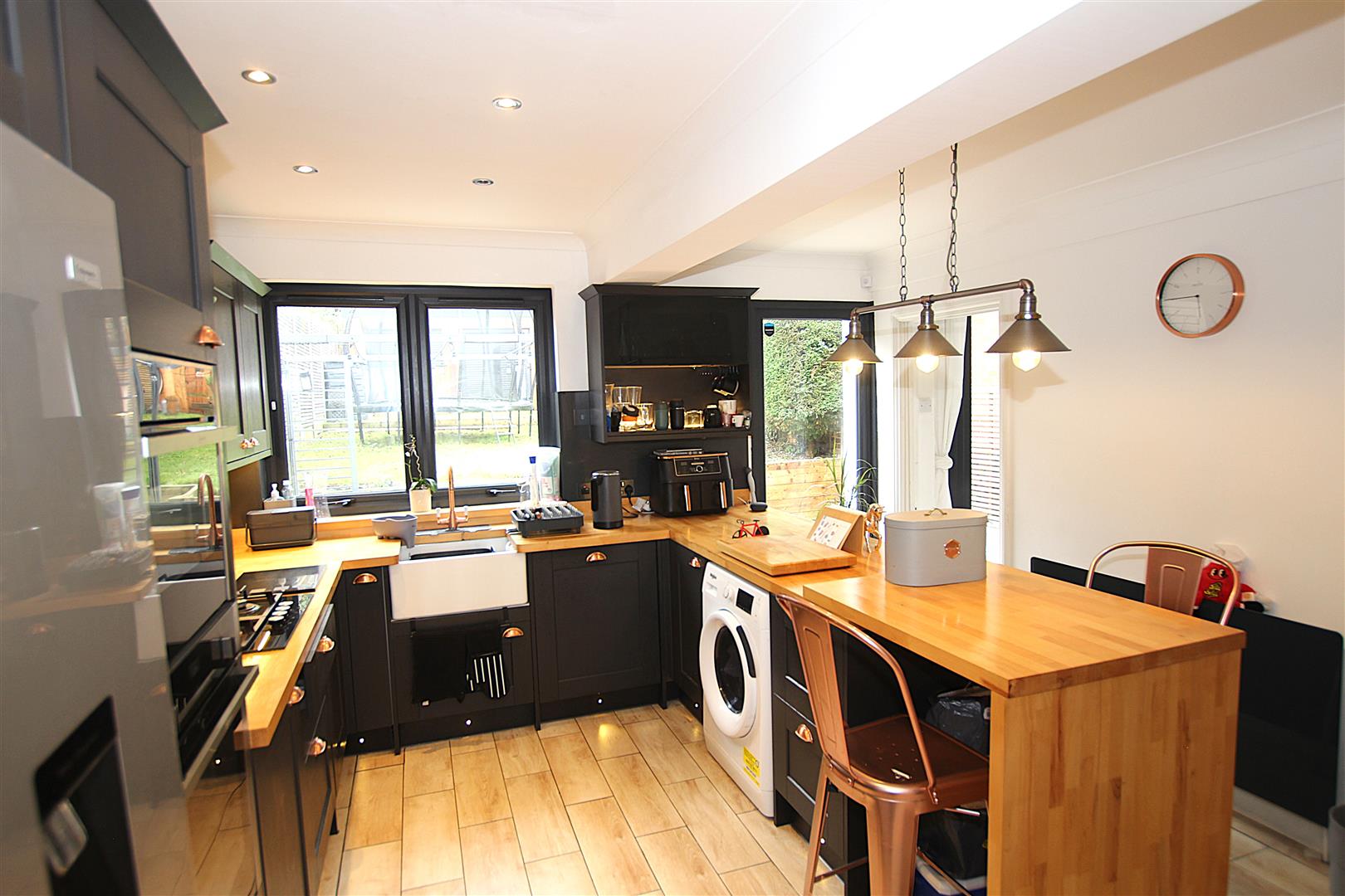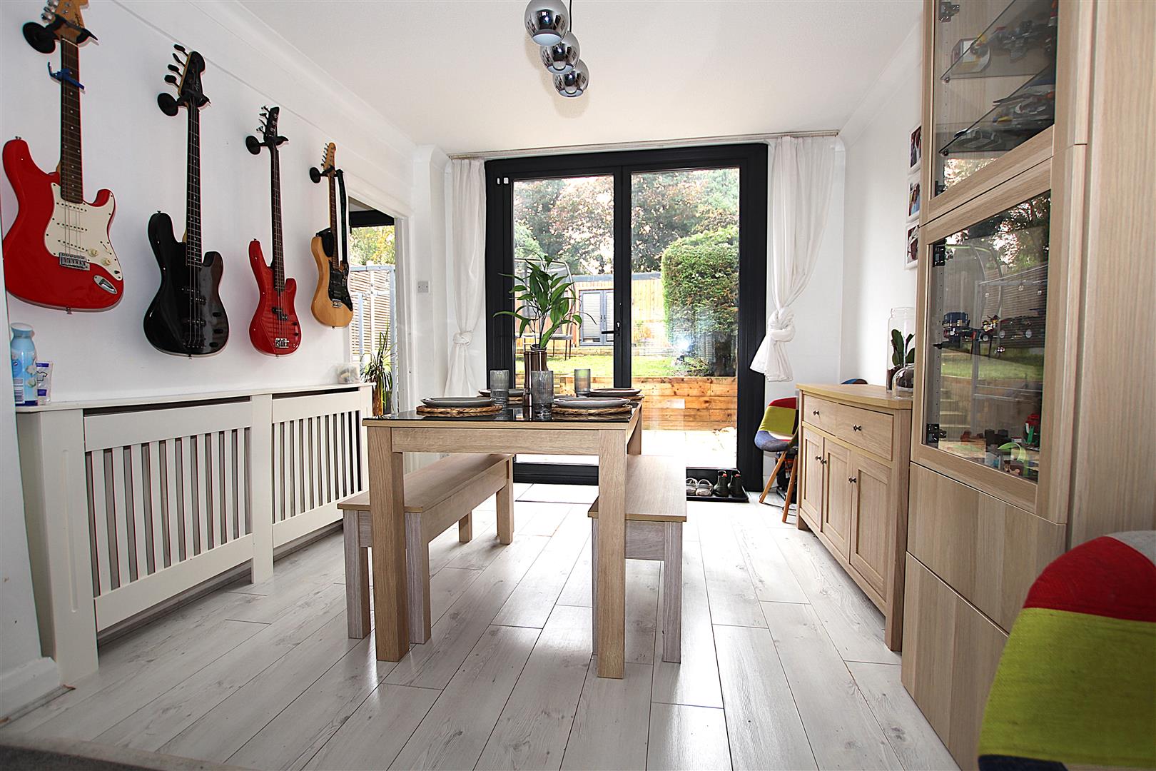 The open plan living/dining area has bi-fold doors leading in to a generous, yet easy to maintain garden. The summerhouse at the back of the garden is currently used for storage and provides additional space for a further home office, or even a bar.