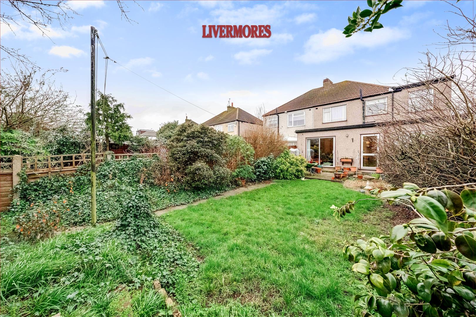 Approximately 57' patio area, laid to lawn, plant and shrub borders, shed to remain.
