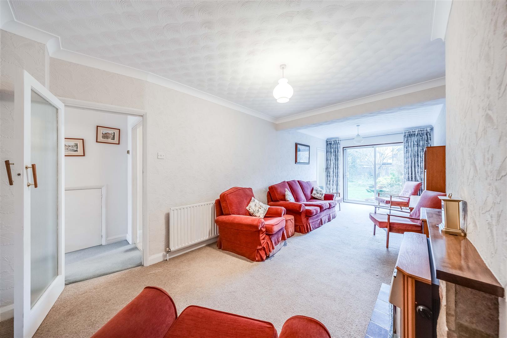 Double glazed patio doors to garden, feature fireplace, radiator.