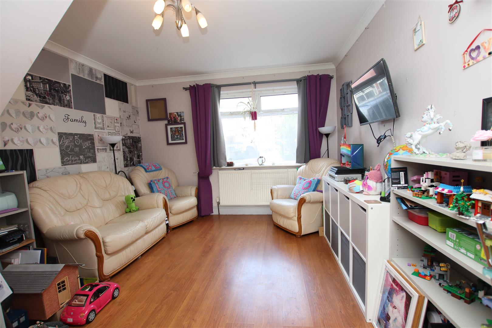 To the second floor there is a fantastic space that is currently set up with 2 bedrooms and a large play area but with a little imagination could be tuned into a spacious master bedroom with ensuite. Externally there is hardstanding to the front for a car and a rear garden.
