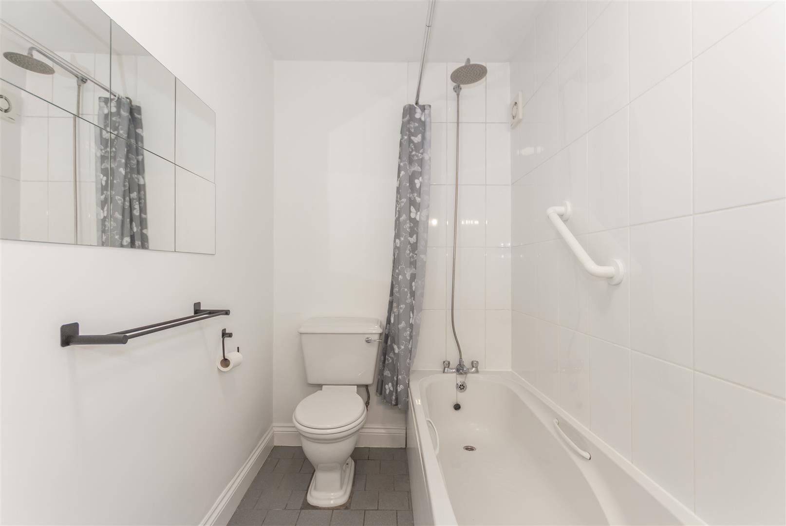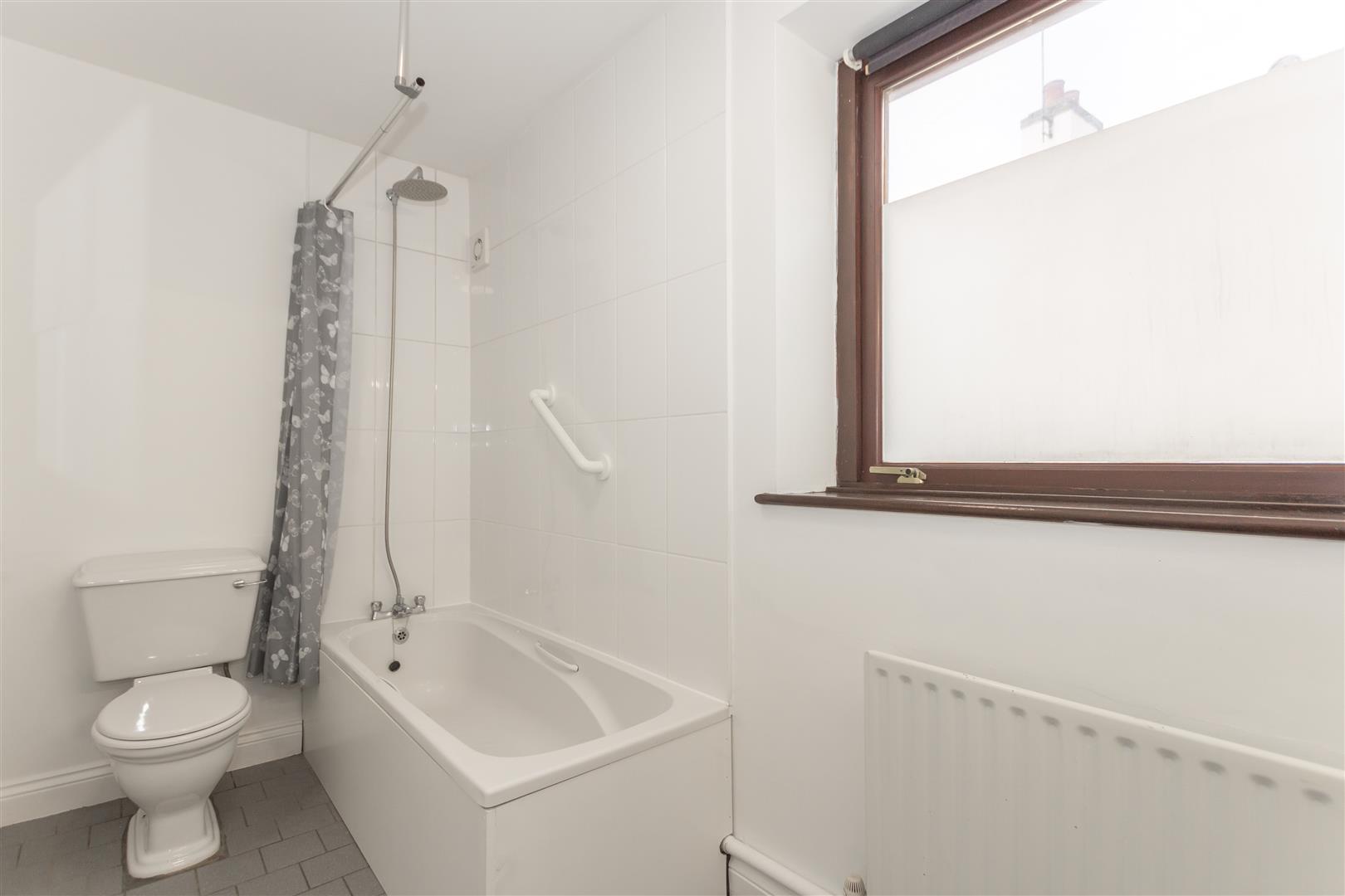 Panelled bath. Low level W/C. Pedestal wash hand basin. Radiator. Fitted cupboard with wall mounted gas fire boiler for central hating and hot water. Double glazed window to front.