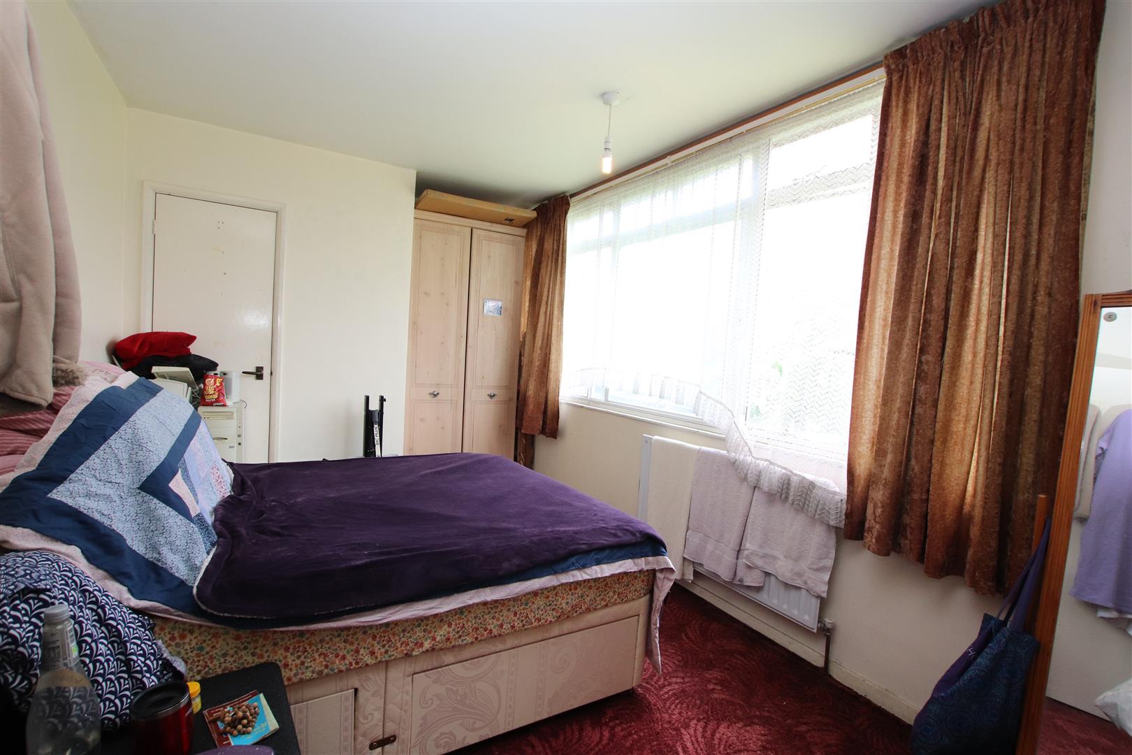Window and door to rear, carpet, radiator.