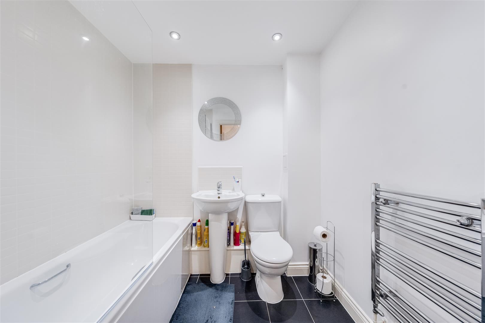 The generous double bedroom is well-proportioned and benefits from a large window. The contemporary bathroom suite is stylishly finished with a full-size bathtub and overhead shower.