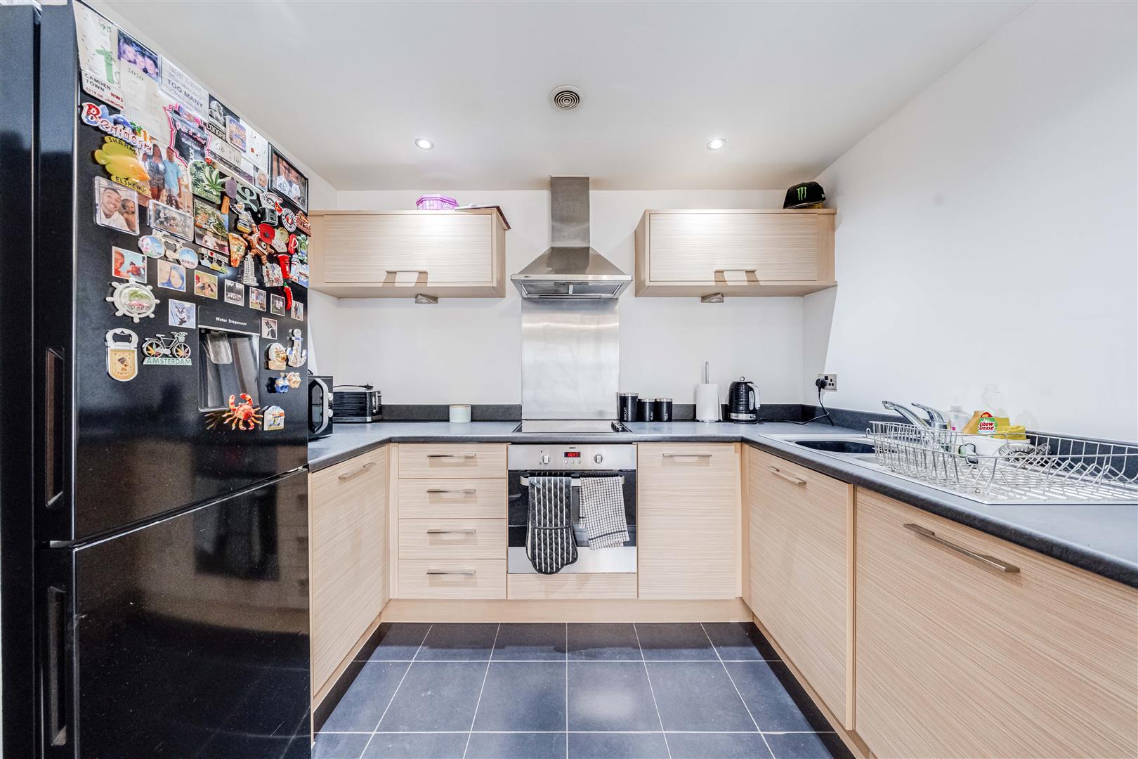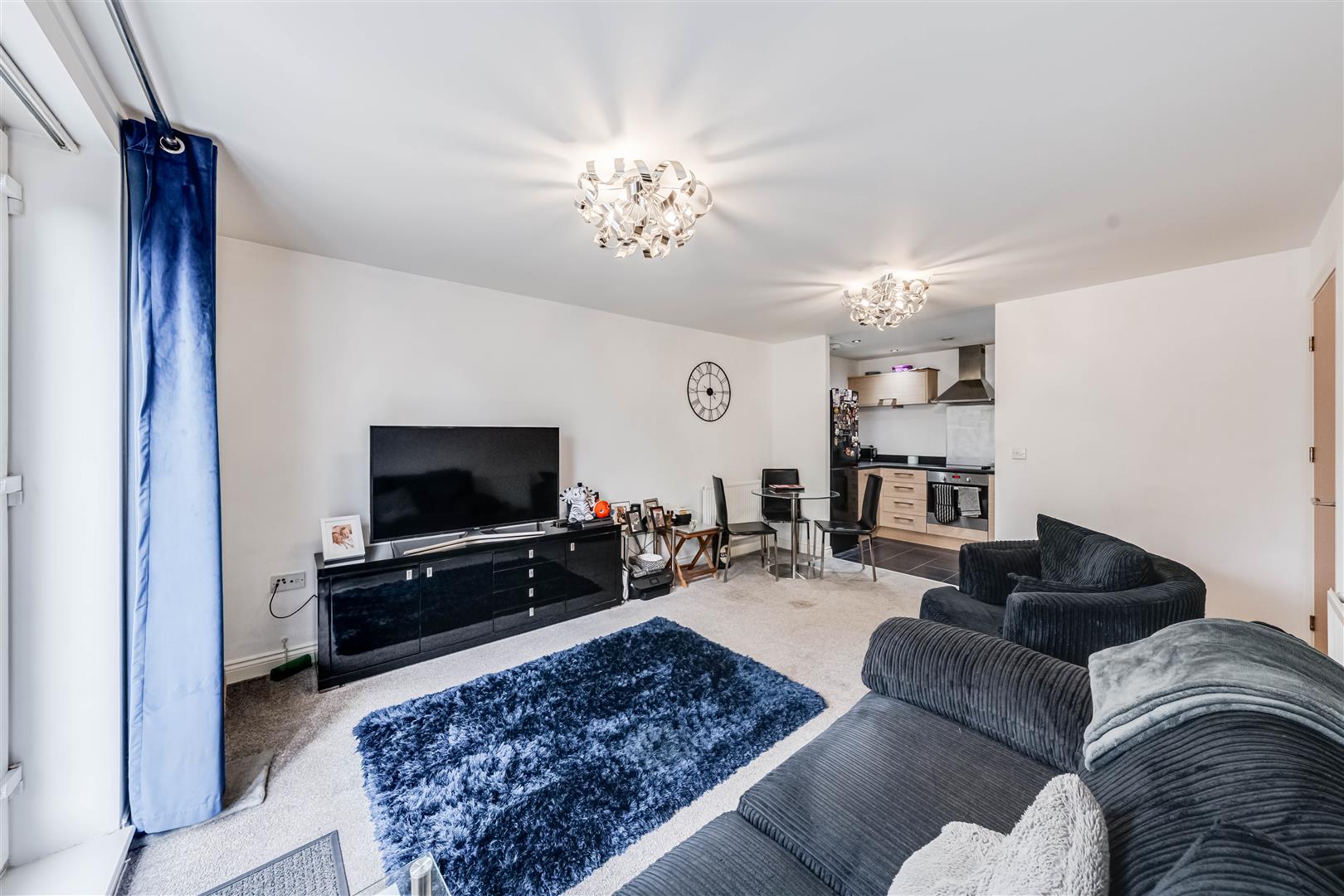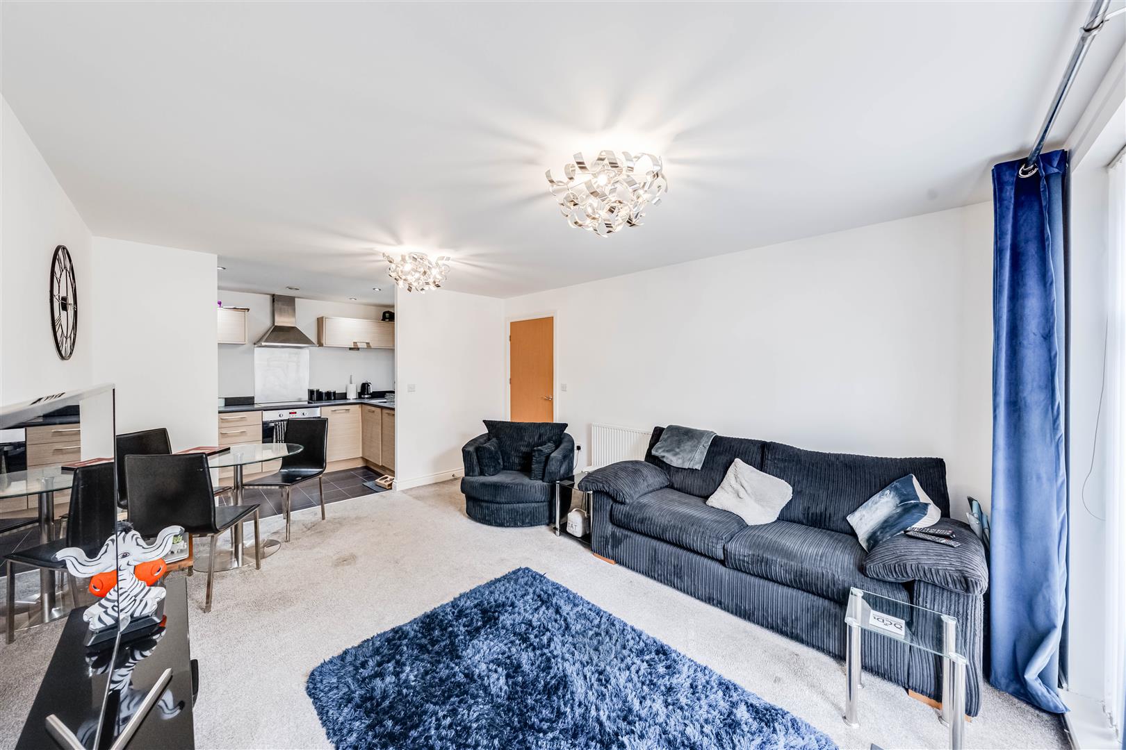 The spacious lounge/diner is the heart of the home, featuring a patio doors opening onto outside communal space, allowing plenty of natural light to flood the property. This area flows seamlessly into a modern fitted kitchen, equipped with sleek cabinetry, and ample worktop space.