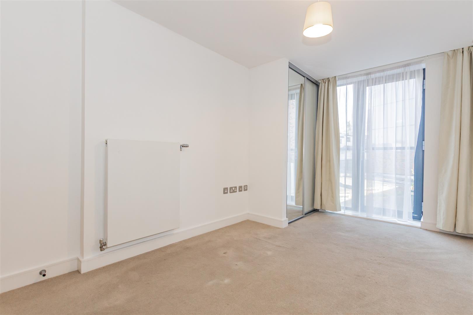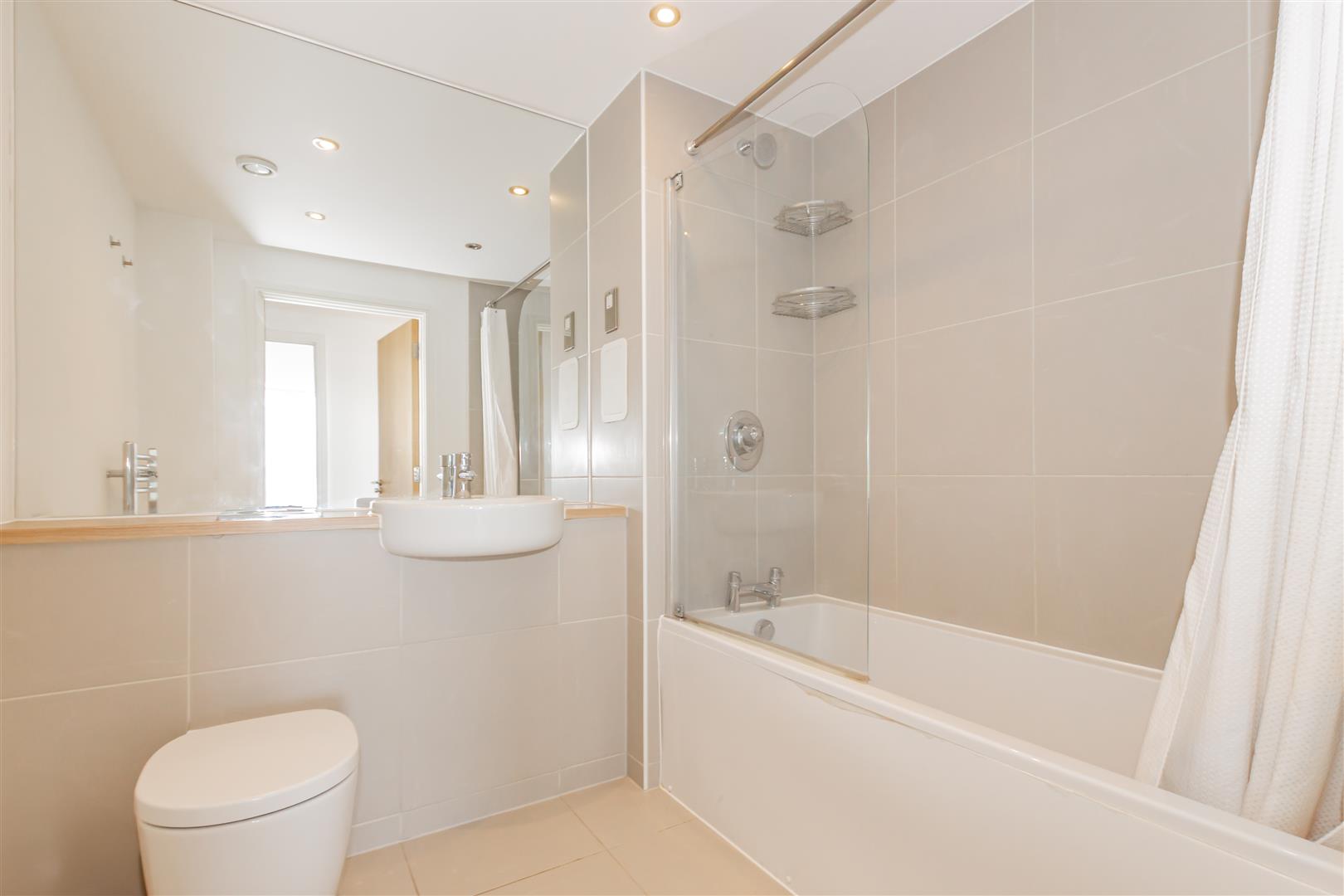 There are two double bedrooms, both finished in neutral décor. The main bedroom benefits from a built-in wardrobe and an en-suite shower room, while the second bedroom is served by a well-appointed family bathroom with a sleek white suite. A useful storage cupboard can also be found in the hallway.