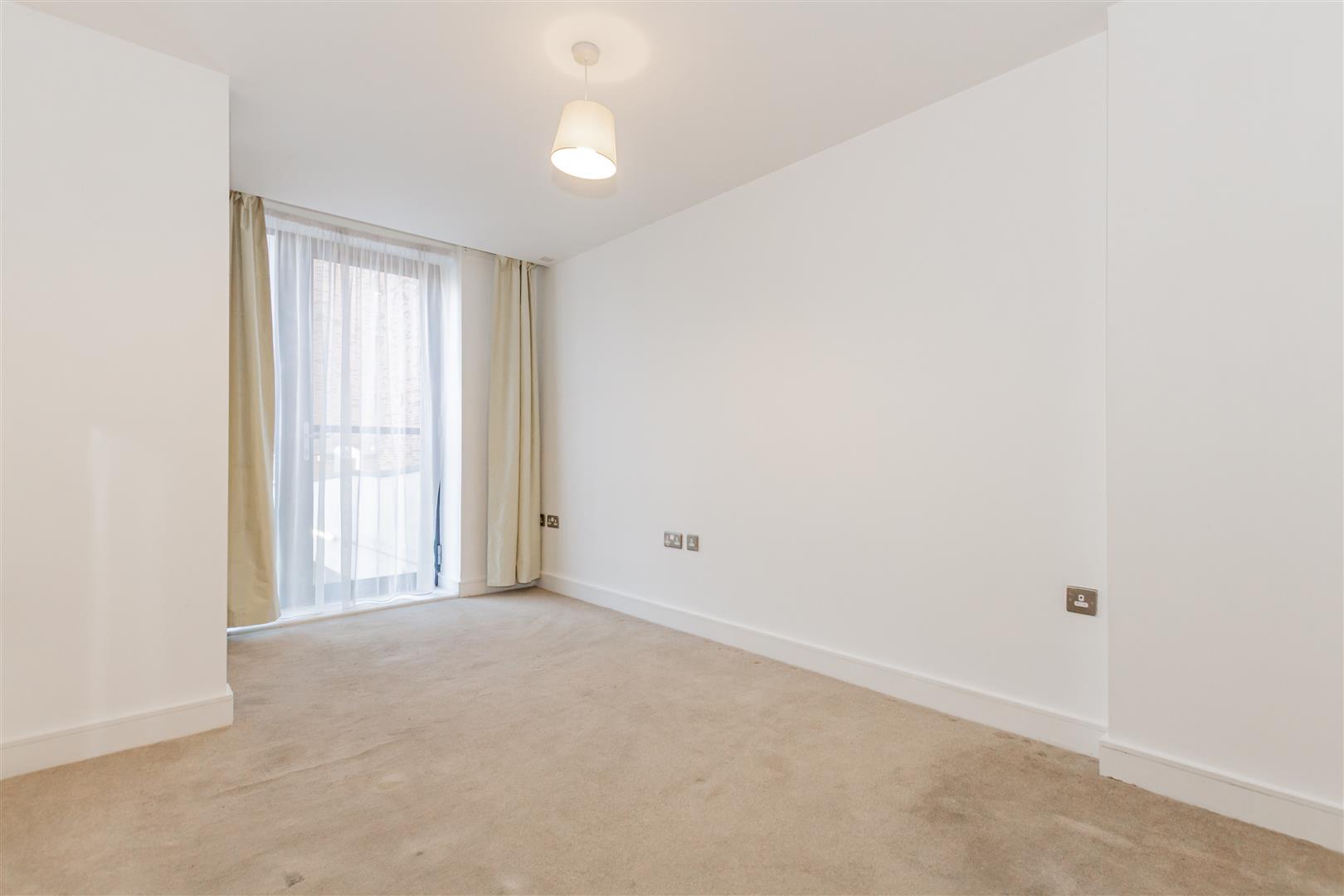 The apartment is bright and well laid out, featuring an open-plan lounge and dining area with wood flooring and floor-to-ceiling windows. The contemporary kitchen is fitted with high-gloss units, integrated appliances, and practical worktop space, providing a clean and modern feel.