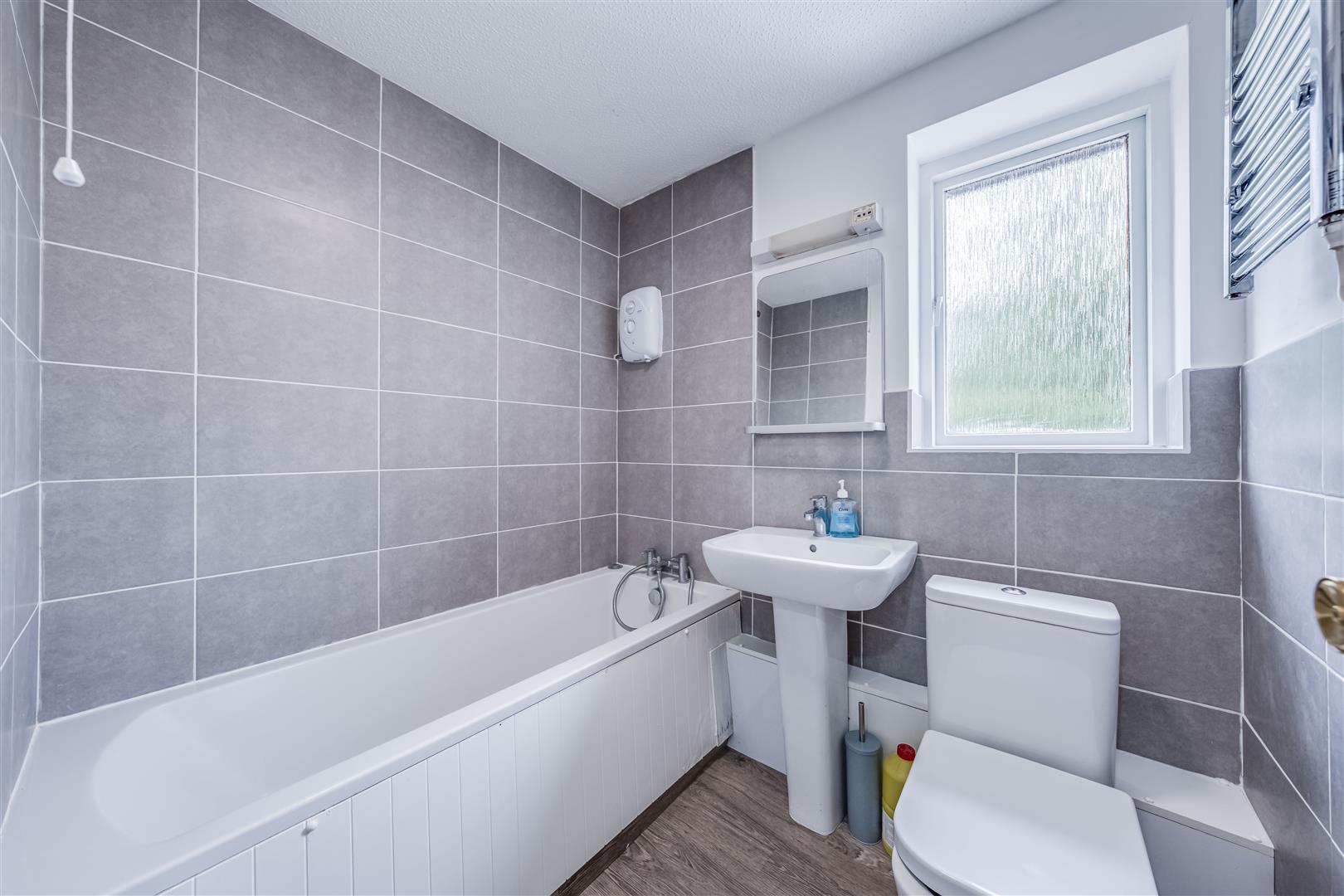Both bedrooms are well-proportioned doubles and each includes a built-in mirrored wardrobe, offering excellent storage without compromising space. The bathroom is fully tiled and features a modern white suite with an electric shower over the bath.